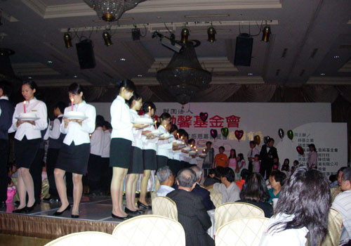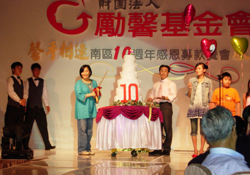 勵馨基金會南區辦公室為慶祝成立十週年籌辦感恩募款餐會,昨日在漢來飯店舉辦「馨手相連感謝有您」記者會。由義工周督導的吉他音聲中揭開序幕。