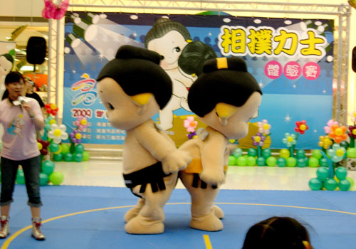 2009世運在高雄「相撲力士體驗賽」,大手牽小手逗陣來台南新天地比高下相撲』競技是2009年世運正式比賽項目之一,高雄市政府社會局為讓市民朋友瞭解相撲運動的競技禮儀、規則、比賽方式..等,由兒童福利服務中心規劃並訂於98年4月5日(週日)下午2:00~4:00假新光三越百貨公司台南新天地舉辦「相撲力士體驗賽」活動,歡迎闔家大小逗陣來試一試身手,比力氣、比技倆、一較高下。
