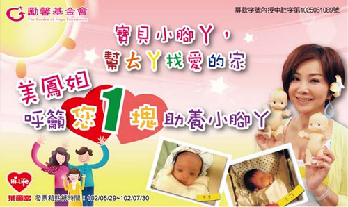 這是一場愛的接力,當出養父母無力扶養小孩,把孩子交給勵馨基金會,尋求愛ㄊㄚ,接納ㄊㄚ的另一個家時,愛的故事就開始接力。勵馨急徵助養人「陪小腳ㄚ走下去」,並與銀行業者合作,卡友捐款助養小腳ㄚ贈送限量捐款感謝禮,歡迎大家成為小腳ㄚ助養人,支持小腳ㄚ長大!