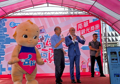 韓國瑜指出,南華商圈早期是高雄三大夜市之一,近年商圈內建設全台首座日本模購天棚結構,讓消費者免於風吹日曬,搭配非常便利的捷運路線,是逛街購物的絕佳地點,期盼民眾6月22日光頭日相約到南華商圈暢遊購物。市府將透過活動宣傳把南華商圈、凱旋夜市、新崛江等商圈全部帶動起來。